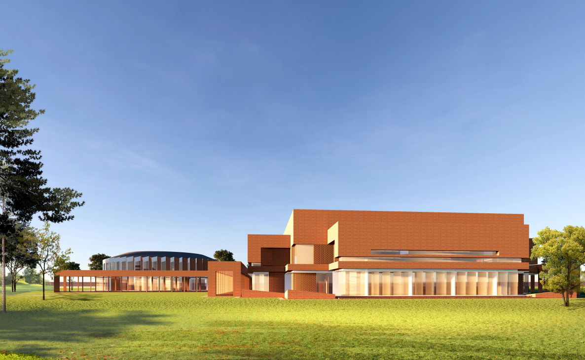 l 技術(shù)亮點(diǎn):超大塊鋸齒形全玻幕墻,鏤空清水磚幕墻;