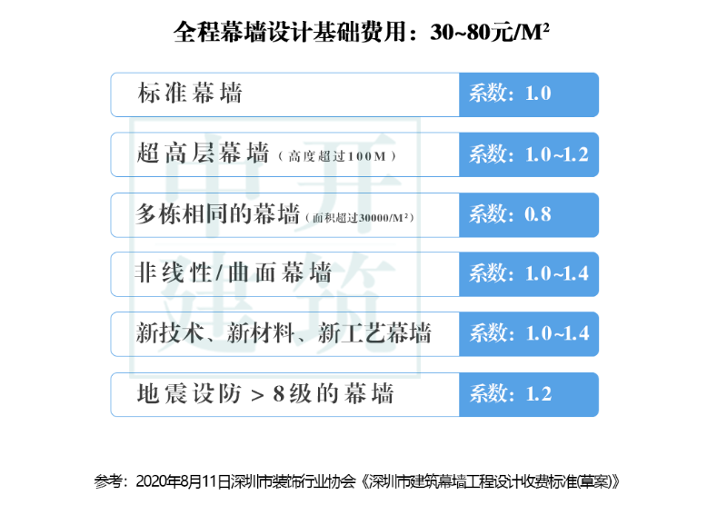 四、幕墻設(shè)計(jì)費(fèi)用的計(jì)提參考(按幕墻展開面積定價(jià))